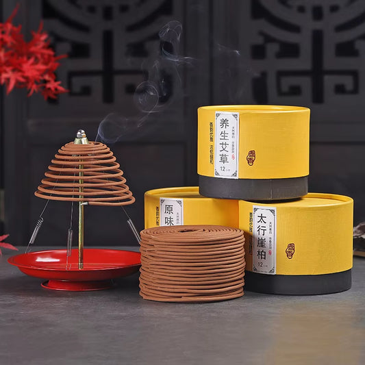 FY 24/12 Hours Coil Incense Household Buddha Sandalwood Wormwood Incense Coil Optional Red Incense Holder Toilet Deodorization